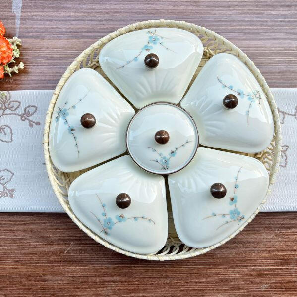 Khay mứt tết Bát Tràng họa tiết hoa xanh nhạt đẹp