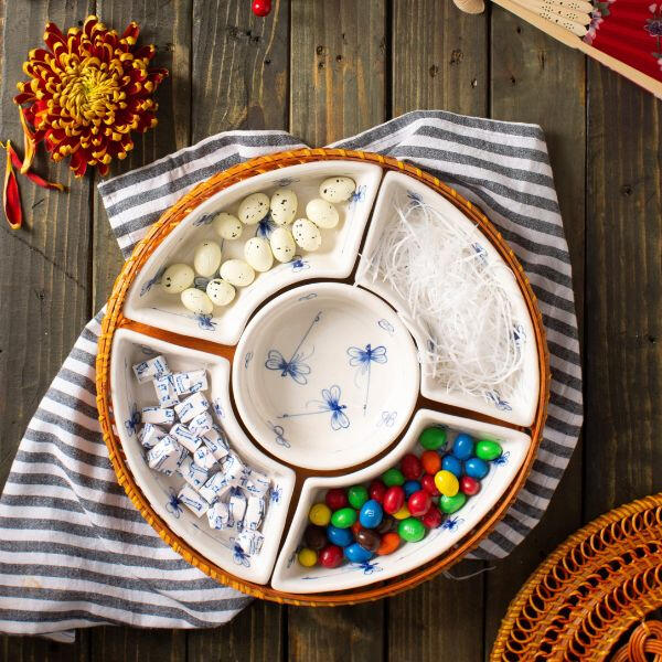Khay mứt tết Bát Tràng họa tiết chuồn chuồn là một trong những vật phẩm không thể thiếu vào những ngày lễ Tết, vì chúng không chỉ có tác dụng trưng bày mà chúng ta còn thể sử dụng trong các hoạt động sinh hoạt hàng ngày như chưng yến, giữ mát, caramen,…nữa đấy!